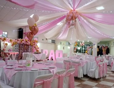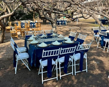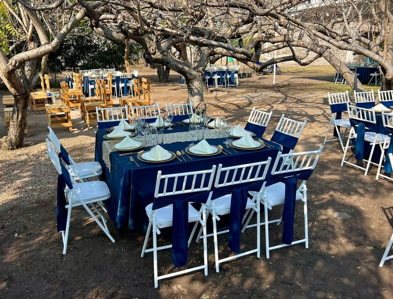 Banquete completo, carpa, mesas y sillas para celebrar tu boda sin preocuparte por nada, solo disfrutar tu gran día.