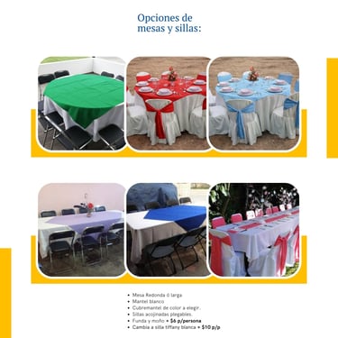 Todo listo para tus XV: banquete o taquiza, carpa, mesas y sillas para una fiesta inolvidable con familia y amigos.